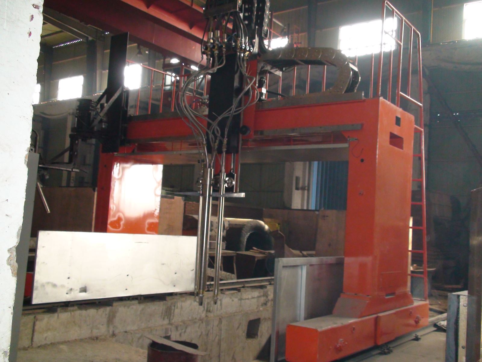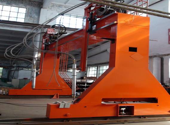 ● 龍門所配二臺(tái)焊機(jī)、保護(hù)氣氣瓶(至少2個(gè))、控制柜等均放在龍門兩側(cè)托架上,隨龍門一起移動(dòng),進(jìn)龍門的外部供電線纜采用滑線供給,使得龍門移動(dòng)范圍加大。